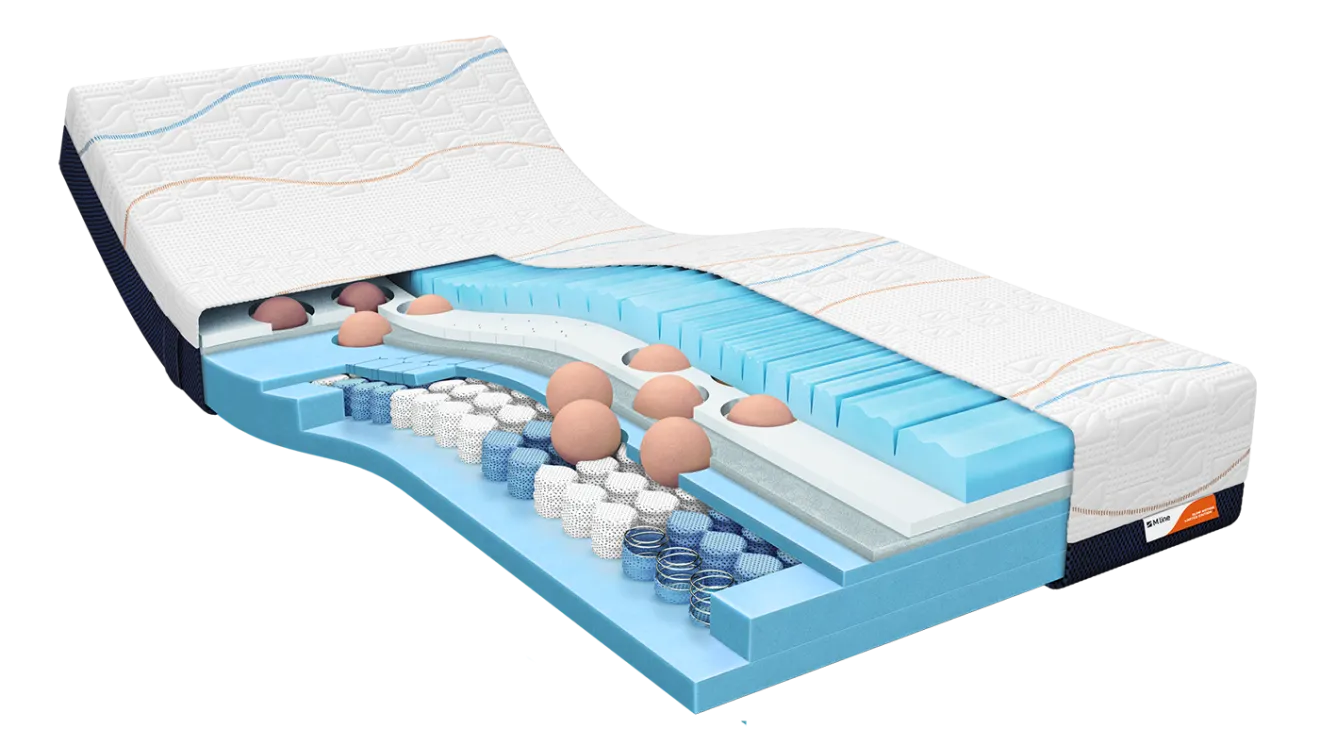 Les ressorts 7 zones soutiennent le corps aux bons endroits et assurent une répartition optimale de la pression. M line a développé et testé cette zonation avec 6 000 testeurs. La structure ouverte des ressorts favorise également une excellente ventilation.