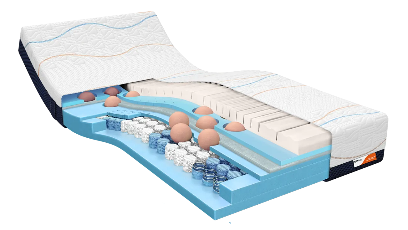 Lorsque vous êtes sur le point d'acheter un nouveau matelas, vous voulez le matelas qui vous convient le mieux. Tout le monde n'a pas la même position de sommeil ou posture. Il n'y a pas de matelas universel qui convient à tous. C'est pourquoi M line propose une vaste collection de matelas. Chaque type de matelas est composé de différents types de matériaux et doté de techniques différentes. Vous aimeriez savoir quel matelas est fait pour vous ? Suivez le sélecteur de matelas de M line. Vous recevrez votre conseil personnalisé quelques minutes plus tard.